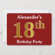 Invitation Rouge, Faux Gold 18e fête d'anniversaire + Nom per