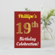 Invitation Rouge, Faux Or 19e anniversaire Célébration + Nom