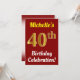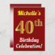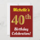 Invitation Rouge, Faux Or 40e anniversaire Célébration + Nom