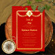 Un bouchon de diplôme en or et un cadre serpentin arrondi d'or ton or et rouge d'invitation à la fête de graduation qui peut être personnalisée pour les diplômes de lycée, collège, université ou professionnel. Conception composite par Holiday Hearts Designs (droits réservés).