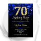 70e anniversaire invitation à la fête. Elégant design bleu royal avec faux or parties scintillant. Dispose de diamants élégants, lumières de livres et police de script. Hommes ou femmes anniversaire invitation. Idéal pour une fête d'anniversaire pour adultes. Personnalisez avec vos propres détails. Message-moi si vous avez besoin d'une personnalisation plus poussée. Invitations Zazzle imprimées ou téléchargement instantané modèle imprimable numérique.