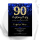 90e anniversaire invitation à la fête. Elégant design bleu royal avec faux or parties scintillant. Dispose de diamants élégants, lumières de livres et police de script. Hommes ou femmes anniversaire invitation. Idéal pour une fête d'anniversaire pour adultes. Personnalisez avec vos propres détails. Message-moi si vous avez besoin d'une personnalisation plus poussée. Invitations Zazzle imprimées ou téléchargement instantané modèle imprimable numérique.