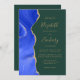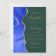 Invitation Royal Blue Gold Agate Emerald QR Code Mariage