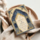 An opulent Islamic wedding design featuring a teal and gold arched frame inspired by mosque architecture and Persian artistry. With intricate floral motifs and geometric symmetry, this invitation exudes elegance, spirituality, and timeless cultural refinement — ideal for a luxurious Islamic wedding.