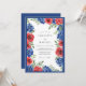 This design features a striking contrast of bold crimson roses and deep sapphire blue hydrangeas. Soft watercolor brushstrokes create a rich floral arrangement against a clean white backdrop. Lush green foliage adds a natural touch to the vibrant primary color palette. The aesthetic is both classic and spirited, perfect for a high-summer event.