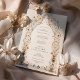 Faites un tour dans un jardin fantastique avec notre Faire-part de mariage aviaire victorien enchanté. Ce design enchanteur présente une myriade de fleurs dans une palette pastel de pêche, de broussailles et de crèmes, entrelacés de sauge et de verdure d'olivier. Une touche ludique est apportée par la présence de charmantes papillons et d'oiseaux dans des teintes bleu ciel, orange tendre et roses délicates, qui semblent flotter et percher parmi les festons floraux. La voûte en voûte de fleurs et de faune évoque l'ornement d'un jardin d'hiver victorien, ouvrant la voie à une célébration mariage magique entourée par la beauté de la nature.