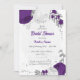 Fleurs royales romantiques violet & blanc avec feuille argent botanique invitation à la douche nuptiale Les détails de la parties scintillant sont simulés. Il est adapté à la fois pour les invitations à la douche nuptiale et à la douche bébé.