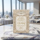 Transport your guests to a bygone era of opulence with this regal design that perfectly sets the tone for your fairytale union. Ideal for couples seeking a vintage glamour aesthetic, this layout whispers of romance, grandeur, and timeless elegance. Personalize the text details to create a majestic keepsake that celebrates your unique love story.This is a flat-printed card featuring a high-resolution digital illustration designed to simulate a rich, tactile experience. The background displays a faux quilted diamond tufting pattern in warm beige and sepia tones, creating a plush appearance. An ornate, faux gold architectural frame surrounds the central text area, adorned with elaborate acanthus leaf scrollwork and lush rose floral bouquets. At the top center, two white swans face one another, their necks arching to form a heart shape against a central geometric mandala rosette. The design is flanked by illustrated draped satin fabric curtains in a champagne hue. Typography features elegant black calligraphy script for names, paired with a classic vintage serif font for details.
