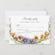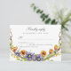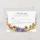 Carte de réponse Rsvp avec des fleurs de printemps d'aquarelle, tulipes, forsythie, clematis et brindilles en arrangements colorés.