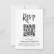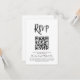Un mariage noir et blanc RSVP qui vous permet de réserver votre place à la fête en utilisant un code QR. Utilisez google pour trouver un générateur de code QR gratuit. Vous pouvez ensuite générer un code pour votre page Facebook, votre site Web ou votre répertoire personnalisé afin de remplir vos emplacements réservés pour votre événement.