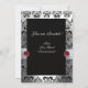 INVITATION RUBAN BLANC FUCHSIA NOIR DAMASSÉ MONOGRAMME