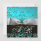 INVITATION RUBAN BLANC TURQUOISE NOIR DAMAS MONOGRAMME