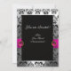 INVITATION RUBAN FUCHSIA BLANC NOIR MONOGRAMME DAMASSÉ