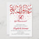Invitation Ruban rouge et argent et Confetti rouge 50e annive