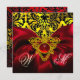 INVITATION RUBAN ROUGE OR CŒUR CELTIQUE MONOGRAMME DAMASSÉ