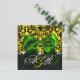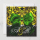 INVITATION RUBAN VERT OR JAUNE NOIR DAMAS MONOGRAMME