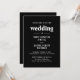 Faire-part de mariage moderne avec un design simple et minimal avec une typographie audacieuse en blanc sur un arrière - plan noir. Les couleurs peuvent être modifiées en n'importe quelle couleur que vous choisissez dans l'outil d'édition de conception. Cette faire-part de mariage contemporaine est idéale pour un mariage à thème gothique ou halloween.