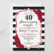 Invitation de fête d'anniversaire de mariage de 40 ans Ruby red. Élégante carte d'invitation rouge, noir et blanc avec faux strass argenté. Caractéristiques des rayures noires et blanches stylées, police de caractères script et roses rouges. Parfait pour une célébration de 40e anniversaire de mariage.