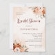 Ces magnifiques invitations à la douche nuptiale présentent un style boho branché et une élégante calligraphie bordeaux. Des bouquets bohèmes rustiques de fleurs orange, pêche, rougies et taupes et des feuilles botaniques neutres décorent les coins, avec des éclaboussures d'aquarelle assorties sur un arrière - plan moelleux. Bien qu'il s'agisse d'un wedding shower d'automne ou d'automne, ce design charmant sera parfait à tout moment de l'année.