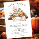 Cette invitation de Thanksgiving comporte une table en bois rustique avec un festin de Thanksgiving et les mots "Donner Merci". L'invitation est simple et élégante, avec un arrière - plan blanc et un texte noir. La table en bois rustique et la fête de Thanksgiving apportent une touche de chaleur et de confort, et le message "Donner Merci" rappelle le véritable esprit de la fête.