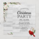 Célébrez la saison avec cette invitation de Noël Rustic Red Bird Holly Wood Holiday Fête. Avec un texte blanc et festif écrit à la main sur un arrière - plan de mur en bois blanc, le design présente un oiseau cardinal rouge assis sur une branche à feuillage persistant, et le revers présente des décorations festives de verdure avec des saints et des baies. Donnez le ton pour une fabuleuse fête d'hiver !