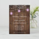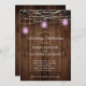 Invitations de mariage rustiques avec des lampes à cordes blanches avec des jarres en mason violet pâle sur un arrière - plan patiné en bois de grange. Les zones de texte sont faciles à personnaliser avec vos propres informations. Si vous désirez ce design sur un produit correspondant, ou si vous avez besoin d'aide, veuillez me contacter par l'intermédiaire de mon magasin.