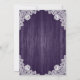 Invitations de mariage rustique violet et bleu avec un bouquet d'haleine hydrangée et bébé à l'intérieur d'un bocal de maçon sur un arrière - plan en bois et dentelle fleurie. Un design de carte parfait pour inviter vos invités à votre fête de mariage campagnard rustique violet et bleu inspirée des fleurs d'hydrangée. Carte facile à personnaliser.