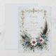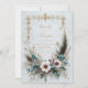 Create a soft and romantic atmosphere with this exquisitely detailed invitation design. The artwork features a graceful bottom border composed of large, pale blush cosmos flowers and eucalyptus leaves, flanked by sweeping feathers in neutral tones. The top of the invitation is crowned with a delicate, antique-style gilded flourish that adds a touch of royalty to the rustic composition. The clean, off-white background allows the intricate botanical and feather details to stand out, making it a perfect blend of modern sophistication and vintage charm. This gentle and airy design is an impeccable choice for a spring meadow ceremony or a relaxed countryside reception. You might also select this lovely aesthetic for a sophisticated bridal shower brunch, a sweet sixteen birthday party, or a gender-neutral baby naming ceremony. This artistic floral border is also perfectly suitable for boutique skincare brand packaging, artisan florist business cards, or luxury spa gift vouchers.