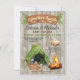 Rustic Adventure Attend les invitations au camping et à S'mores Baby Shower. Comprend tente, panier de pique-nique, lanterne, feu de camp ou feu de camp et S'mores. Panneau en bois rustique et arrière - plan. Tous les termes peuvent être modifiés sauf "Adventure Await".