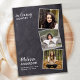 Rustic Chalkboard Unique Memorial Funeral / Célébration De La Vie Invitation. Ces invitations funéraires sympathiques présentent un collage photo unique pour 3 de vos photos préférées, un nom monogramme, un coeur "In Loving Memory" sur tableau noir dans un design gris et blanc. Personnalisez cette célébration de l'invitation funéraire de la vie avec vos proches photos, nom & dates, détails de l'événement. DROIT D'AUTEUR © 2020 Judy Burrows, Black Dog Art - Tous droits réservés. Rustic Celebration Of Life Photo Collage Memorial Invitation