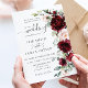 This Wedding invitation card showcases a stunning watercolor floral arrangement in rich burgundy and delicate blush pink hues. Perfectly designed to match our Rustic Blush wedding collection, you can easily personalize it with your details. Simply press the "Edit Using Design Tools" button to customize the text style and placement. Don't forget to explore our coordinating items available in-store for a cohesive and stylish look. (c) The Happy Cat Studio