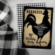 Style rustique ferme avec aspect vieilli, déchirée en papier et chèques de buffle noir et blanc comme arrière - plans pour une silhouette de coq noir "BARBEQUE" Design de fête d'anniversaire par Holiday Hearts Designs (droits réservés).