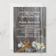 Bois de grange vintage avec chaussures de cheval et marguerites. Faire-part de mariage à thème de pays non traditionnel.