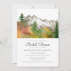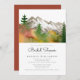 Rustic Fall Frost Mountain Boho Bridal Shower Invitation - présente une magnifique scène de l'aquarelle, boisée avec des grands, des pins, de hautes montagnes et des feuillages d'automne, écriture manuscrite et typographie moderne. Montré avec terre cuite/rouille au dos de l'invitation, cependant, la couleur peut facilement être changée pour coordonner avec vos couleurs dans l'outil de design. L'invitation à la douche nuptiale fait partie d'une collection.