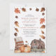 Célébrez votre amour avec cette charmante invitation rustique mariage de automne. Doté de citrouilles d'aquarelle, d'une grange confortable et de feuilles d'automne colorées, ce design donne le ton parfait pour votre journée spéciale. Customisez-le avec vos détails pour créer un souvenir unique et accueillant pour vos invités.