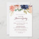 Cette invitation d'anniversaire de mariage de 50 ans avec calligraphie dorée rustique est parfaite pour un anniversaire de mariage moderne. Le design présente des fleurs aquarelles dessinées à la main violet, marine, rose, bordeaux, marine, des feuilles vertes et dorées.