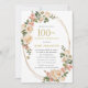 Faites honneur à une femme spéciale avec cette invitation élégante et féminine à la fête du 100e anniversaire. Le 100ème est écrit en gros texte doré. La célébration d'anniversaire suit. Le nom de l'invité honoré est également en lettres majuscules d'or. Le reste du texte est doucement gris colombe. Les détails de la fête d'anniversaire sont entourés d'un cadre doré chic, orné de roses blanches en ivoire, de fleurs roses et de feuilles d'eucalyptus. Bien qu'il s'agisse d'un design traditionnel, le feuillage botanique ouvert et aéré et le texte lui donnent une ambiance contemporaine. Malheureusement, les 100 chiffres ne sont pas modifiables. Si vous avez besoin d'une autre année, je serai heureux de faire un design personnalisé pour vous.