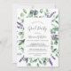 Cette invitation à la fête de remise de diplômes de lavande rustique et d'eucalyptus est parfaite pour une grande fête en plein air simple et élégante. Le design floral présente des feuilles d'eucalyptus aquarelle et de la verdure avec des sprigs de fleurs sauvages violets.