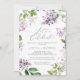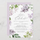 Cette invitation au lilas rustique est parfaite pour une fête de printemps ou d'été, mariage après la fête, la retraite, la remise des diplômes ou tout événement heureux. Le design floral romantique et élégant présente des fleurs sauvages lilas violets d'aquarelle aux allures de jardin boho.