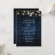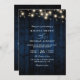 Invitation Rustic Navy Blue Wood String Light QR Code Wedding
