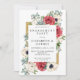 Invitations Rustique Elegant Rouge et Or Floral White Engagement Party. Design Caractéristiques Fleurs Rouges, Anémones et Fleurs Blanches avec Verdure Elégant Cadre Rustique Or Avec Retour