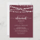 Cette corde rustique illumine l'invitation de la retraite bordeaux est parfait pour un événement simple. Le design est orné de superbes lampes à cordes peintes à la main dans un arrière - plan bordeaux.