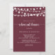 Cette cordes rustique illumine l'invitation à dîner de répétition bordeaux est parfait pour un événement simple. Le design est orné de superbes lampes à cordes peintes à la main dans un arrière - plan bordeaux.