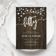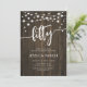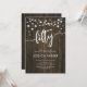 Invitation à la fête du 50e anniversaire. Design rustique avec motif en bois brun foncé. Carte invitation classique avec lumières à cordes et police de script. Parfait pour une célébration anniversaire du cinquantième. Personnalisez avec vos propres détails. Peut être customisé pour n'importe quel âge ! Invitations Zazzle imprimées ou téléchargement instantané modèle imprimable numérique.