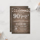 Rustic 90th Birthday Invitation Arrière - plan de bois avec lampes à cordes. 13e 15e 16e 18e 20e 21e 30e 40e 50e 60e 70e 80e 90e 100e, n'importe quel âge. Anniversaire adulte. Fête d'anniversaire de femme ou d'homme.