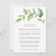 Dîner de répétition rustique avec un design simple avec une aquarelle verte peinte avec de grands feuilles, sur un arrière - plan blanc. Vous trouverez ci-dessous les détails de votre événement dans un gris doux et le côté arrière a un lave-aquarelle vert clair. Un design botanique élégant qui est parfait pour une fête en été.