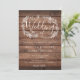 Un faire-part de mariage rustique avec une délicate guirlande à fleurs rustiques dessinée à la main, feuillage de feuilles botaniques, typographie stylisée, sur un arrière - plan de bois rustique. Personnalisez avec vos informations spéciales pour le jour de mariage. Conçu par Thisisnotme©
