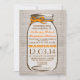 Jolie invitation au mariage campagnard rustique avec un pot de mason dessiné à la main et un arc de cercle orange. L'arrière - plan burlap est un dessin imprimé sur le papier - pas un tissu burlap réel. Contactez-moi si vous avez besoin d'aide pour personnaliser ou pour avoir une demande de couleur personnalisée.