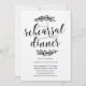 Lauriers tirés par la main rustiques de ce de répétition de dîner de faire-part de mariage pays de caractéristiques de conception avec une police de calligraphie d'amusement.