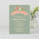 L'invitation rustique de Fête de la mariée des fleurs | par Elke Clarke conçoit les fleurs assez tirées par la main de © en pêche, corail, rose, vert de menthe, jaune, vert et crème et une bannière rose de corail avec les mots "douche nuptiale" dans la typographie écrite à la mode de manuscrit. Le cru l'arrière - plan vert qu'en bon état de papier d'emballage est un effet de photo est imprimé sur la pâte à papier de base comme montré ou choisit d'autres options de papier. Autre colore disponible.